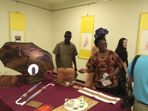 現(xiàn)場來賓興致勃勃地參觀了中國的文創(chuàng)產(chǎn)品展以及中國“非遺”作品展,博物館精美的文創(chuàng)產(chǎn)品和“非遺”傳承人的精彩工藝讓來賓們贊嘆不已。