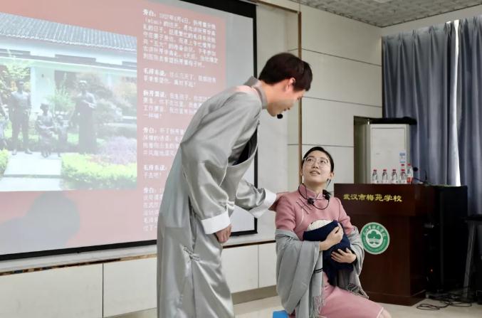 1927年,正值中國革命風云變幻之時,毛澤東為了革命事業殫精竭慮,常常因為公務繁忙不能顧家。在課堂上,洪凱文和熊思宇兩位社教老師為同學們演繹了毛澤東去醫院探望楊開慧和小兒子毛岸龍的場景。