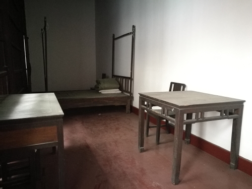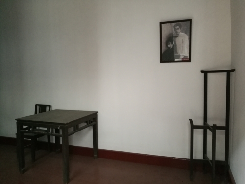 墻上的照片是1927年春夏明翰與妻子鄭家鈞在武昌時的合影。