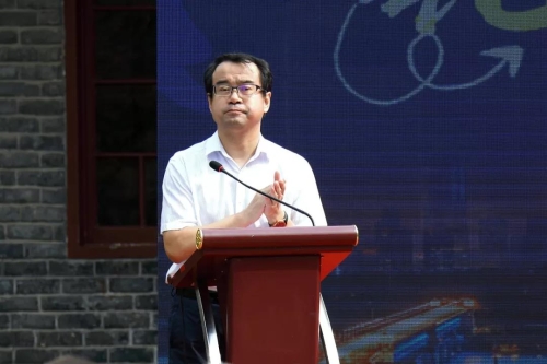 中共武昌區委常委、宣傳部部長王興文為花樣組合團授旗